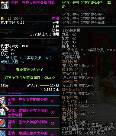 | 25 | 圣物 :守夜女神的兽骨绑腿 | *Lv24~31普通地下城怪物掉落 | ||