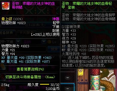 | 20 | 圣物 :荣耀的大地女神的血骨绑腿 | *Lv19~26普通地下城怪物掉落 | ||