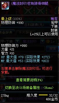 | 25 | (魔法封印)密制狼骨绑腿 | *Lv24~31普通地下城怪物掉落 *在NPC阿尔伯特·伯恩斯坦的物品店购买 *完成[石像的媒介物]任务 *使用Lv24~31怪物掉落的设计图进行制作 |