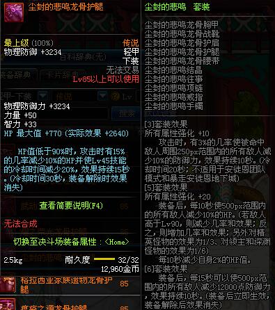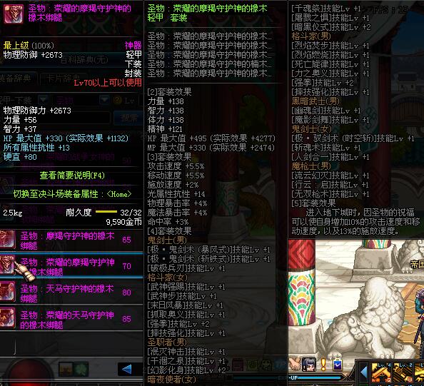 | 85 | 圣物 :荣耀的天马守护神的橡木绑腿 | *Lv85~91普通地下城怪物掉落 | ||