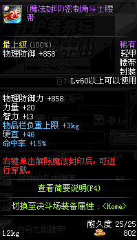 | 15 | (魔法封印)密制木莲腰带 | *Lv13~21普通地下城怪物掉落 *完成[[魔法封印防具]天才武道家的试炼(2/3)]任务 *使用Lv13~21怪物掉落的设计图进行制作 |