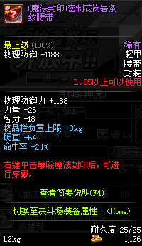 | 25 | (魔法封印)密制狼骨腰带 | *Lv24~31普通地下城怪物掉落 *在NPC阿尔伯特·伯恩斯坦的物品店购买 *完成[斯卡迪女王的指点]任务 *使用Lv24~31怪物掉落的设计图进行制作 |