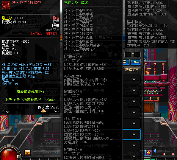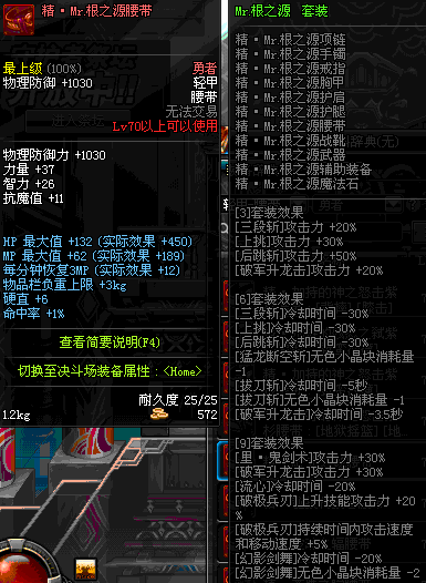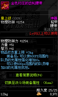 | 75 | 混元武士的暗隐腰带 | *Lv74~81深渊地下城怪物掉落 | 混元武士征战 套装 | |