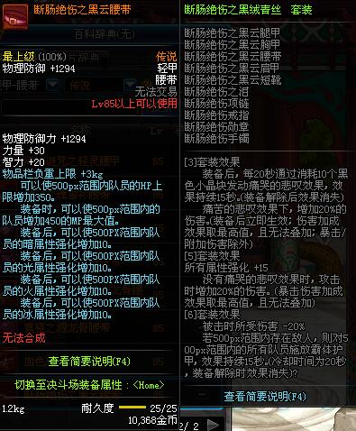 | 85 | 断肠绝伤之黑云腰带 | 昨日之巴斯顿 掉落 (在远古地下城里出没。) *从NPC鲁特的物品店出售的[断肠绝伤防具礼盒]中获得 |
