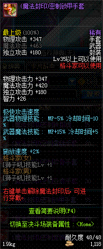 | 35 | (魔法封印)密制锁甲手套 | *Lv34~41普通地下城怪物掉落 |