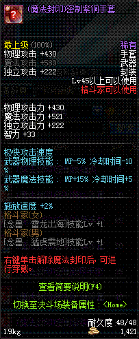 | 辅助装备: | 全职业 鬼剑士 女鬼剑 女格斗 男格斗 神枪手 女枪手 魔法师 男法师 圣职者 暗夜使者 守护者 |