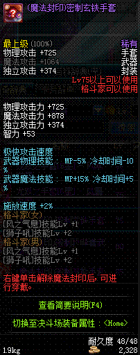 | 75 | (魔法封印)密制玄铁手套 | *Lv75~81普通地下城怪物掉落 *完成[调查紫雾团]任务 *使用Lv75~81怪物掉落的设计图进行制作 |