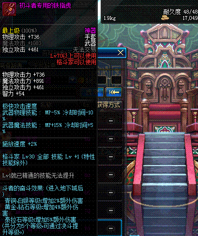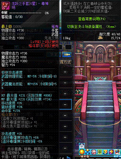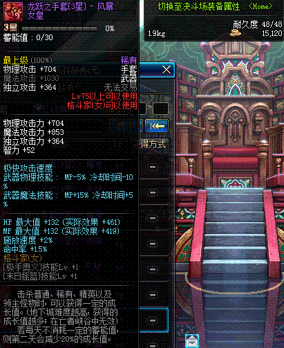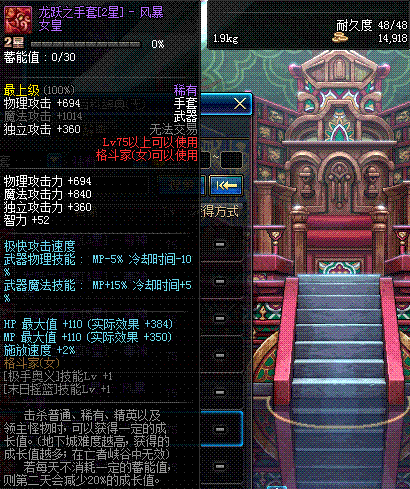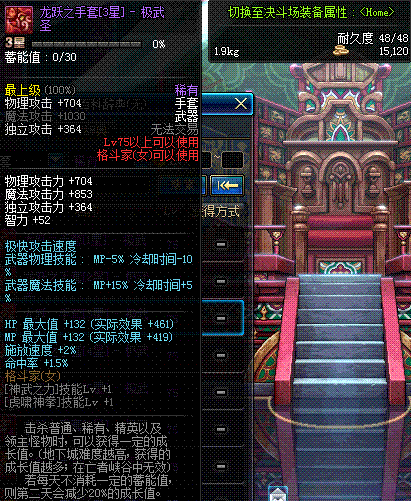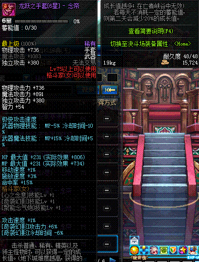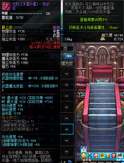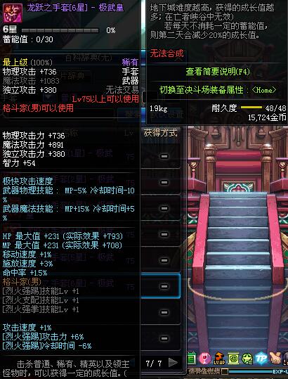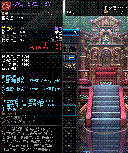 | 75 | 龙跃之手套[3星] - 极武皇 | *完成二次觉醒任务后可以从NPC小铁柱处获得此道具。 | ||