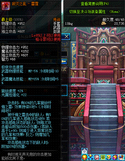 | 85 | 四次元魔法增幅手套 | *黄金小丑 掉落(地下城: 光之舞会) *在NPC猎手伯恩的物品店购买(遗忘陨石×600) |