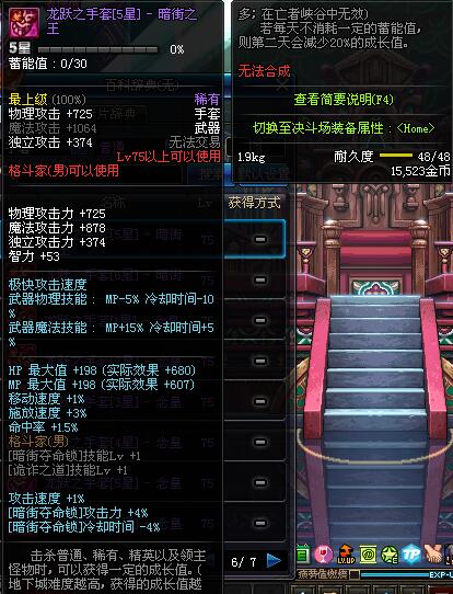 | 75 | 龙跃之手套[6星] - 宗师 | *完成二次觉醒任务后可以从NPC小铁柱处获得此道具。 | ||