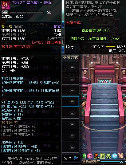 | 75 | 龙跃之手套[5星] - 宗师 | *完成二次觉醒任务后可以从NPC小铁柱处获得此道具。 | ||
