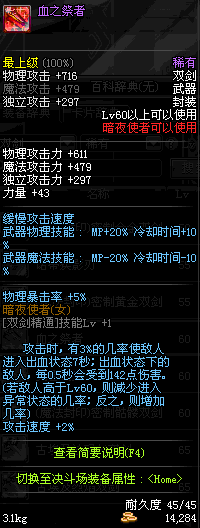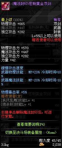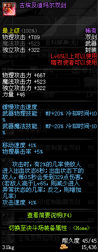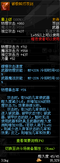 | 55 | 破极卸刃双剑 | *Lv54~61深渊地下城怪物掉落 *在NPC沉默之克雷娅的物品店购买 |