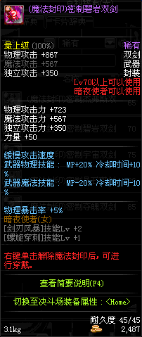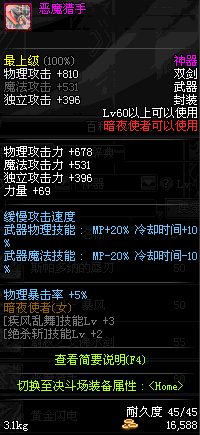 | 辅助装备: | 全职业 鬼剑士 女鬼剑 女格斗 男格斗 神枪手 女枪手 魔法师 男法师 圣职者 暗夜使者 守护者 |