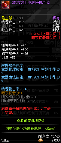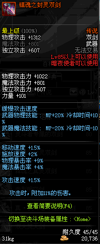 | 85 | 镇魂之封灵双剑 | *时空之门地区 - 吟游诗人艾丽丝 出售 (镇魂之石×100) *购买镇魂武器礼盒(低级镇魂之石×140) |