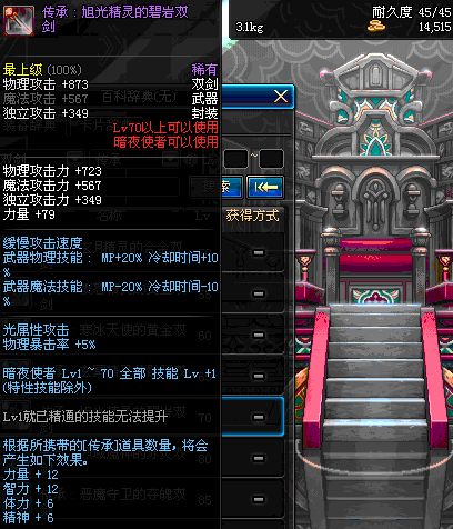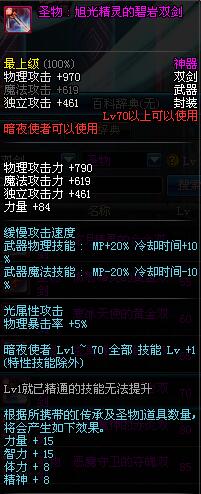 | 70 | 圣物 : 旭光精灵的碧岩双剑 | *Lv70~76普通地下城怪物掉落 |