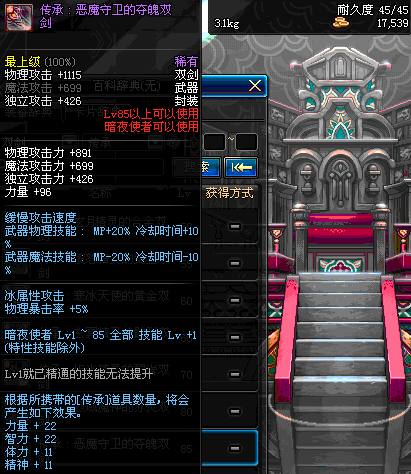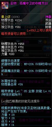 | 85 | 圣物 : 恶魔守卫的夺魄双剑 | *Lv85~91普通地下城怪物掉落 | ||