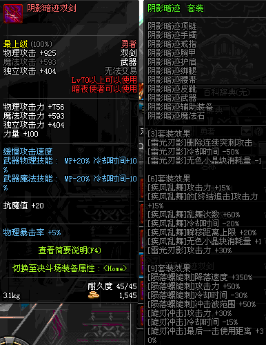 | 70 | 阴影暗迹双剑 | |||
