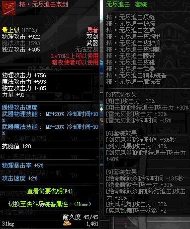 | 70 | 精·无尽追击者双剑 | |||