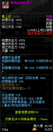 | 50 | 斯帕多纳的犀刃 | *Lv50~56普通地下城怪物掉落 *在加百利的神秘商店购买 |