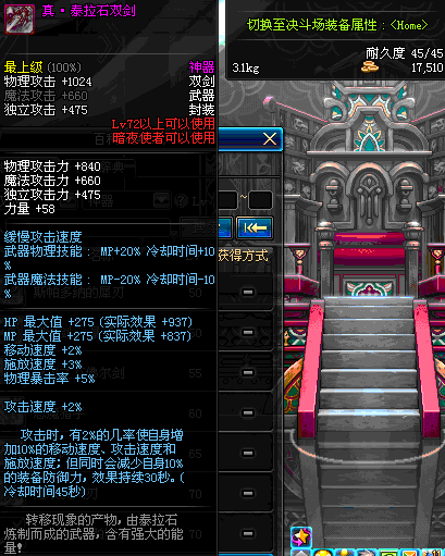 | 72 | 真·泰拉石双剑 | *设计图(70LV以上普通地下城 登场的NPC加百利 出售) *泰拉石双剑 → 用远古神器装备进化书升级(NPC船长鲁特 出售) |