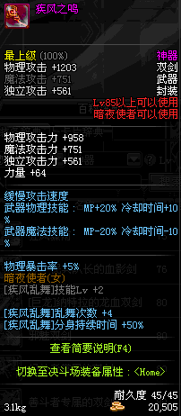| 70 | 无双疾风刃 | *Lv70~76普通地下城怪物掉落 *在加百利的神秘商店购买 |