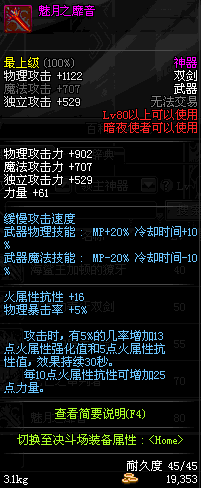 | 80 | 圣物 : 烈域魔神的赤炎双剑 | *Lv80~86普通地下城怪物掉落 | ||