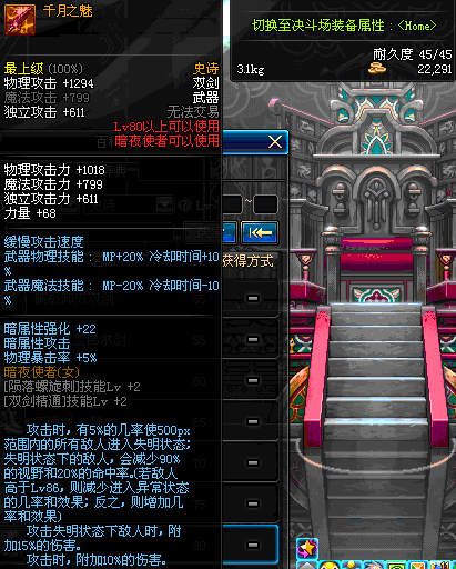 | 80 | 邪魅双剑 | *Lv80~86普通地下城怪物掉落 *在加百利的神秘商店购买 |