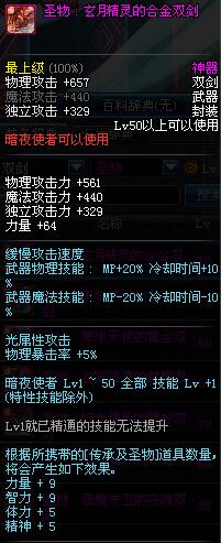 | 50 | 圣物 : 玄月精灵的合金双剑 | *Lv50~56普通地下城怪物掉落 |