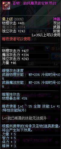 | 35 | 圣物 : 劫风精灵的玄铁双剑 | *Lv34~41普通地下城怪物掉落 |