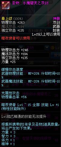| 15 | 圣物 : 水魔碧灵之双剑 | *Lv13~21普通地下城怪物掉落 |