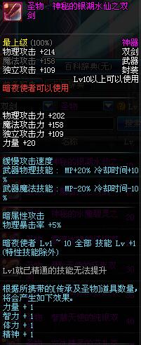 | 10 | 圣物 : 神秘的银湖水仙之双剑 | *Lv8~14普通地下城怪物掉落 |