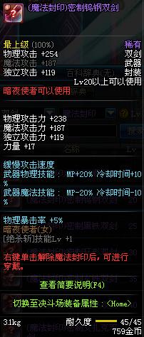 | 15 | 梦魂双剑 | *Lv13~21普通地下城怪物掉落 *在加百利的神秘商店购买 |