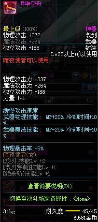 | 25 | 月华空舟 | *Lv24~31普通地下城怪物掉落 *在加百利的神秘商店购买 |