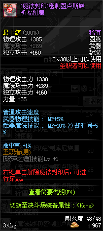 | 45 | 精灵的紫色图腾 | *Lv45~51普通地下城怪物掉落 *在加百利的神秘商店购买 |