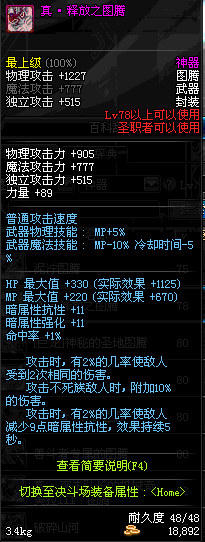 | 70 | 圣物 : 落炎精灵的远古石像图腾 | *Lv70~76普通地下城怪物掉落 |