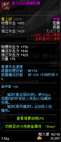 | 40 | 混沌天神图腾 | *Lv39~46普通地下城怪物掉落 *在加百利的神秘商店购买 |
