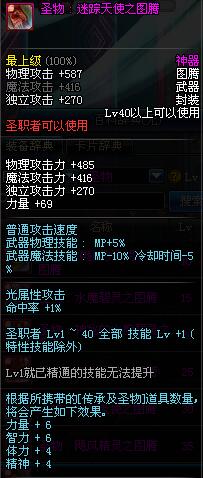 | 40 | 圣物 : 迷踪天使之图腾 | *Lv39~46普通地下城怪物掉落 |