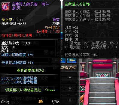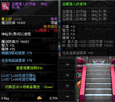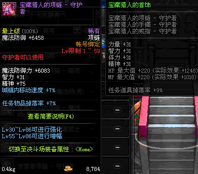 1~59 宝藏猎人的项链 - 魔法师(女) *在NPC艾丽丝的物品店购买 (虚空魔石碎片 900)