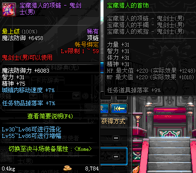 1~59 宝藏猎人的项链 - 鬼剑士(男) *在NPC艾丽丝的物品店购买 (虚空魔石碎片 900)