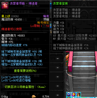 1~59 贪婪者项链 - 鬼剑士(女) *在NPC艾丽丝的物品店购买 (虚空魔石碎片 900)