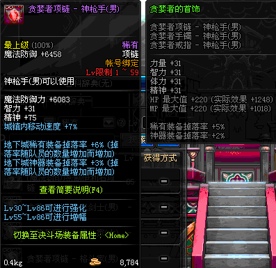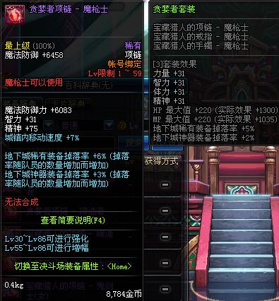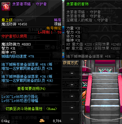 1~59 贪婪者项链 - 魔枪士 *在NPC艾丽丝的物品店购买 (虚空魔石碎片 900)