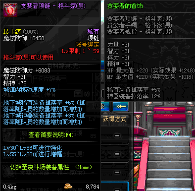 1~59 贪婪者项链 - 格斗家(男) *在NPC艾丽丝的物品店购买 (虚空魔石碎片 900)