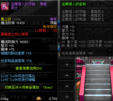 1~59 宝藏猎人的项链 - 黑暗武士 *在NPC艾丽丝的物品店购买 (虚空魔石碎片 900)