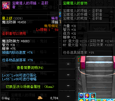 1~59 宝藏猎人的项链 - 圣职者 *在NPC艾丽丝的物品店购买 (虚空魔石碎片 900)
