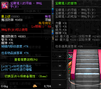1~59 宝藏猎人的项链 - 神枪手(女) *在NPC艾丽丝的物品店购买 (虚空魔石碎片 900)