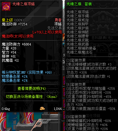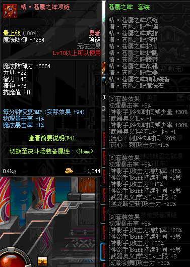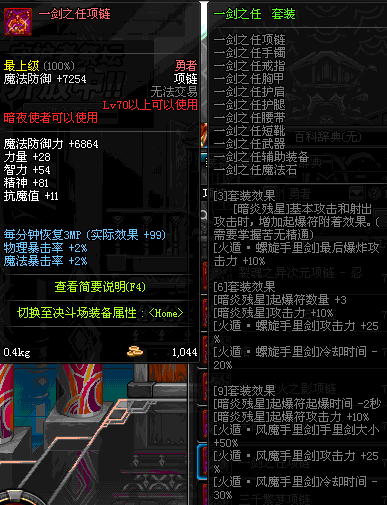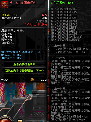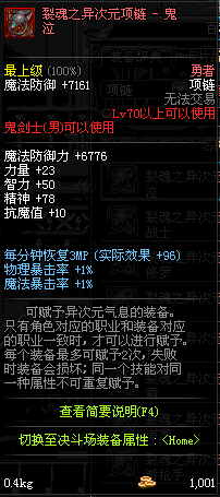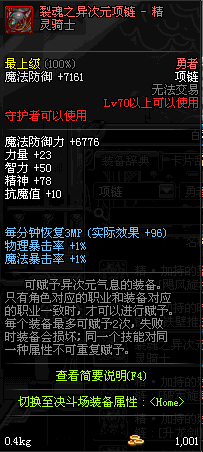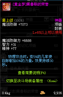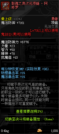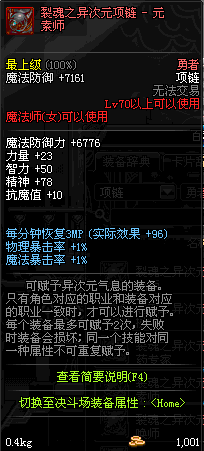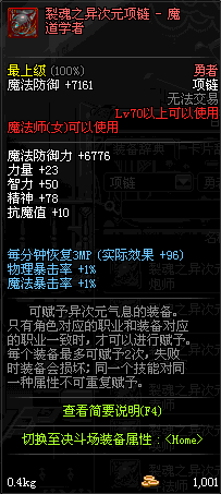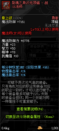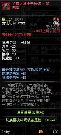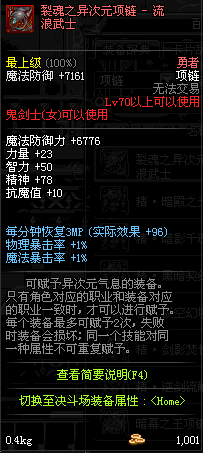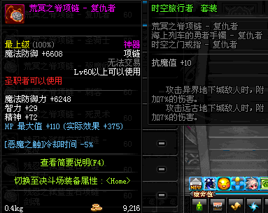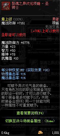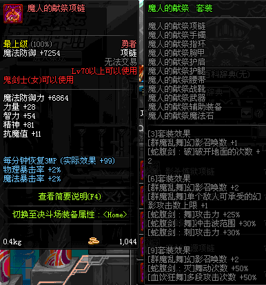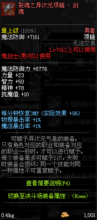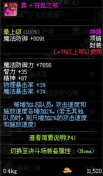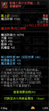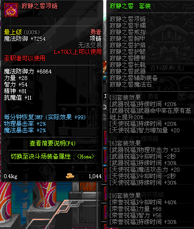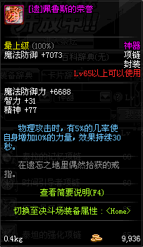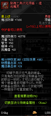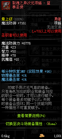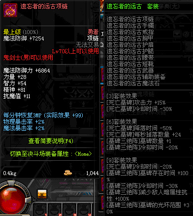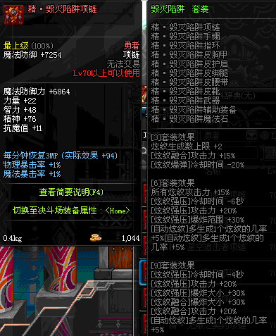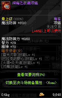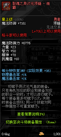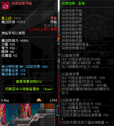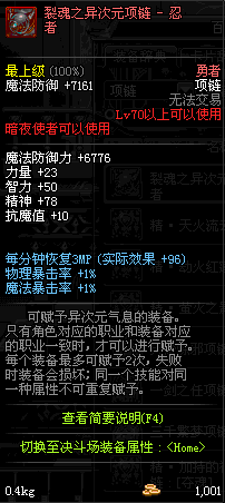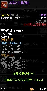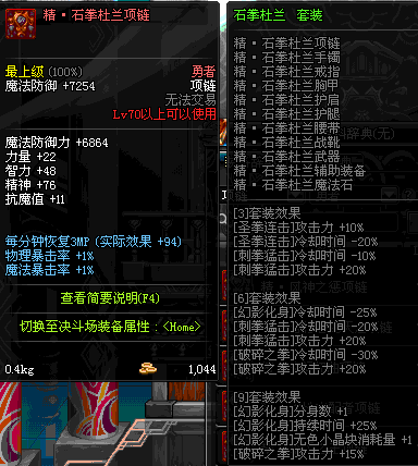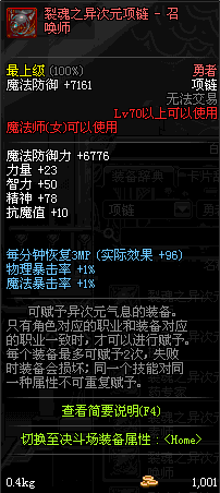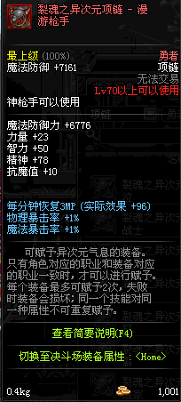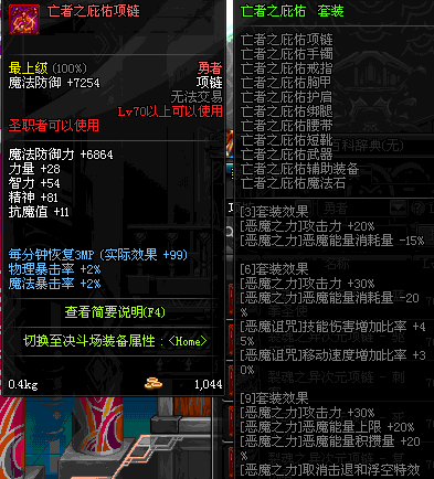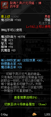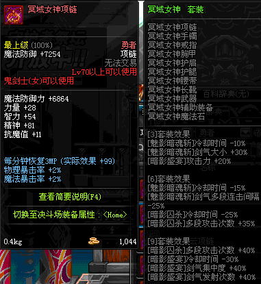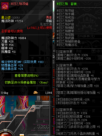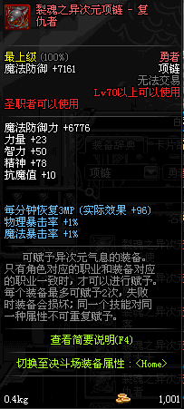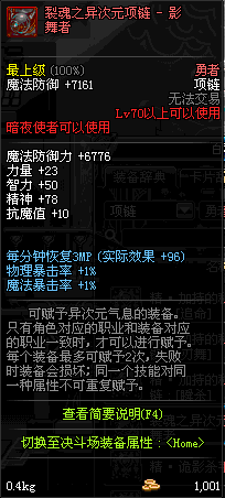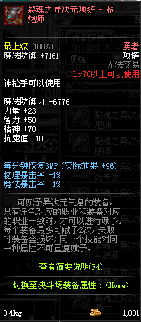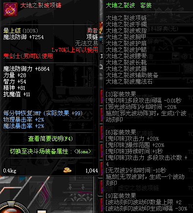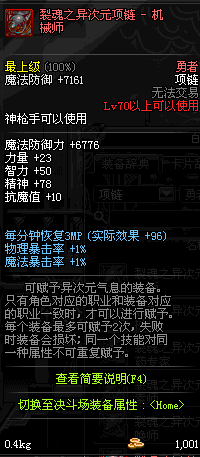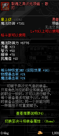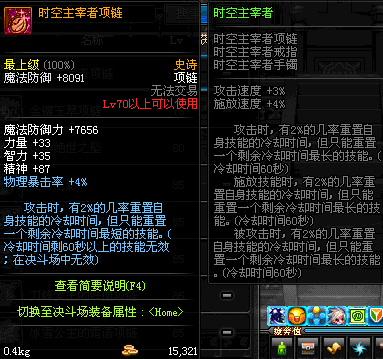 70 时空主宰者项链 *Lv69~76深渊地下城怪物掉落