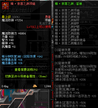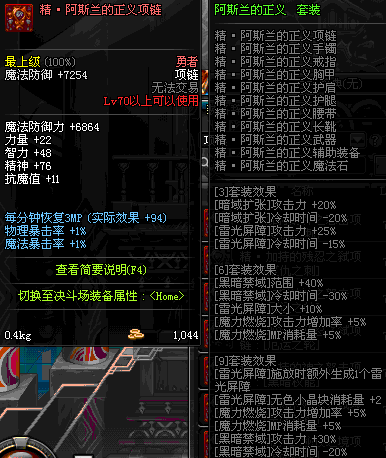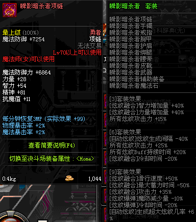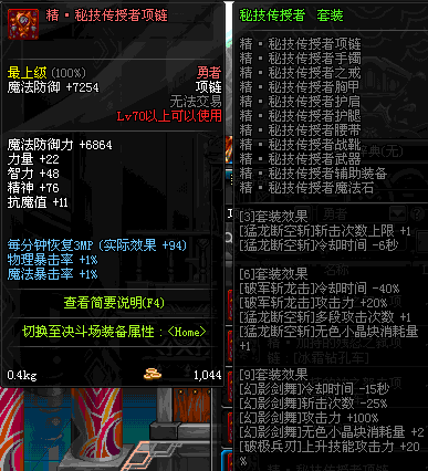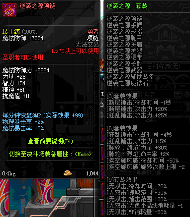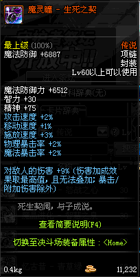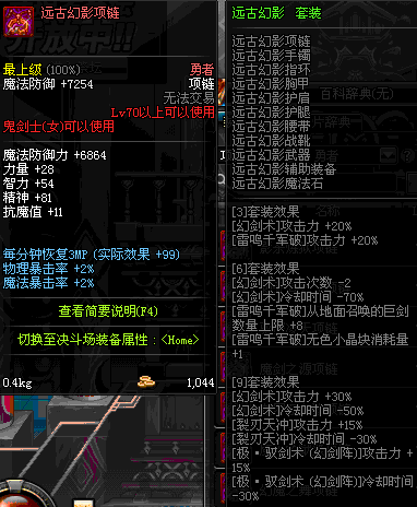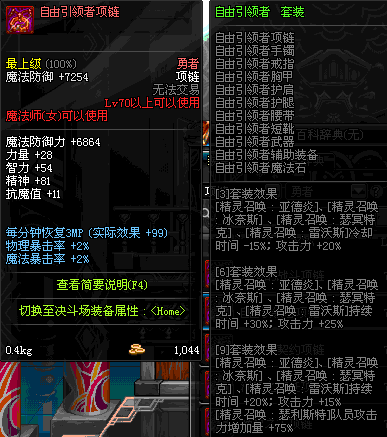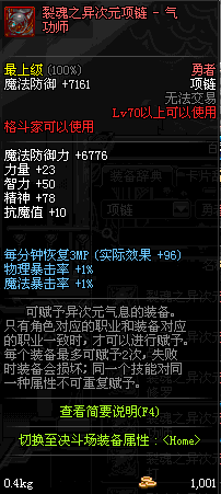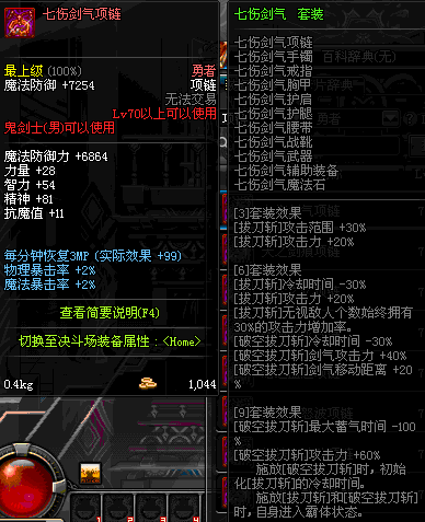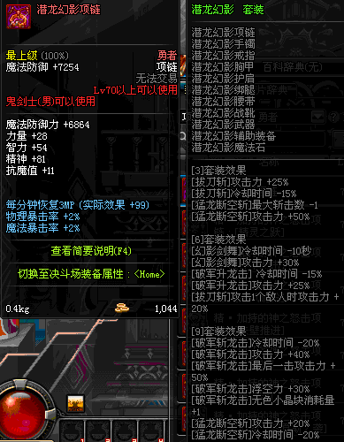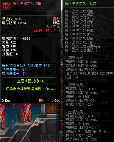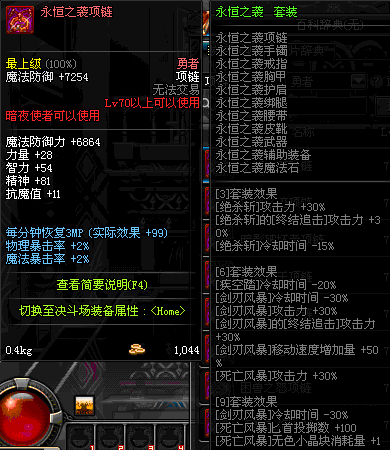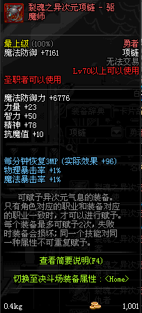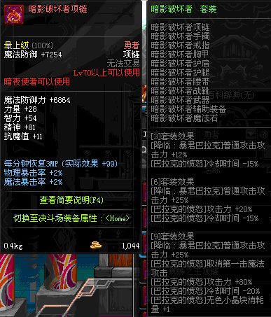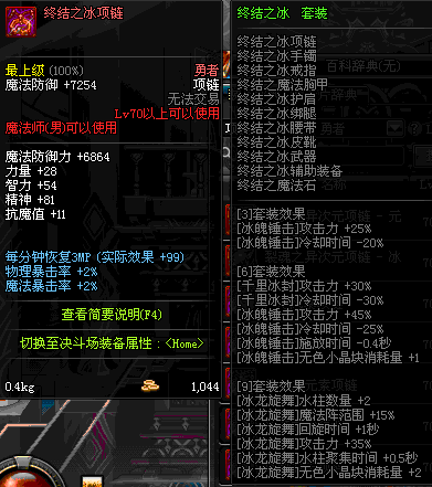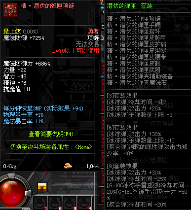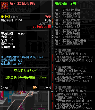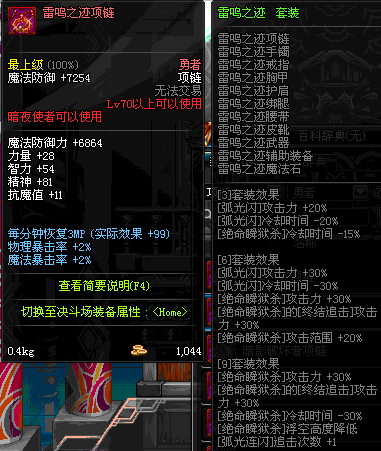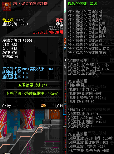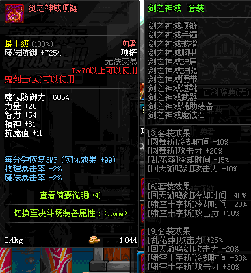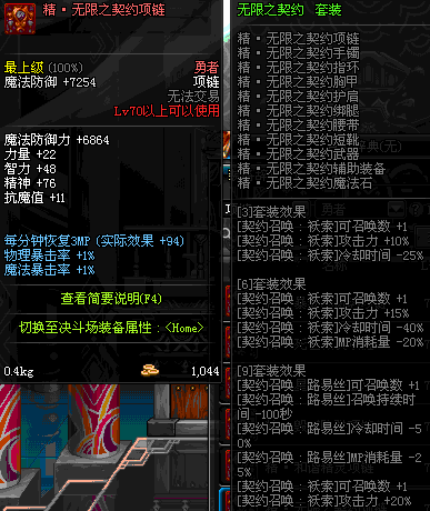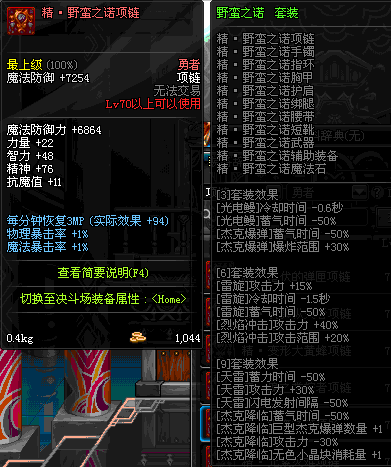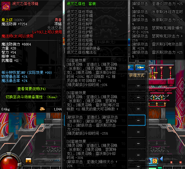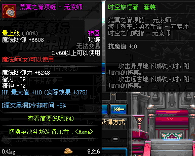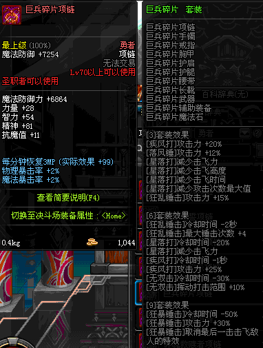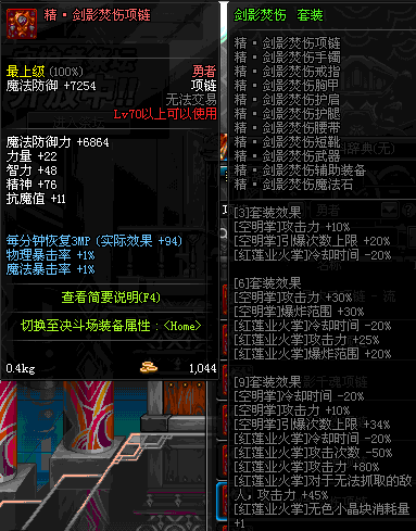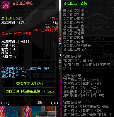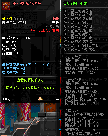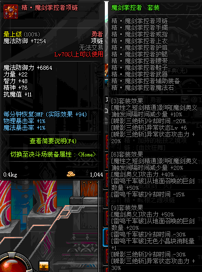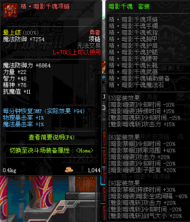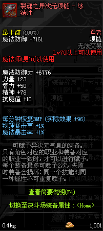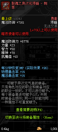 70 时空主宰者项链 *Lv69~76深渊地下城怪物掉落