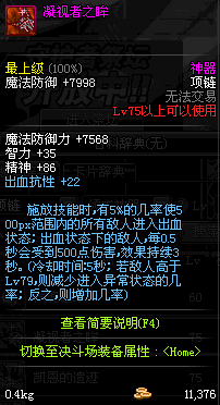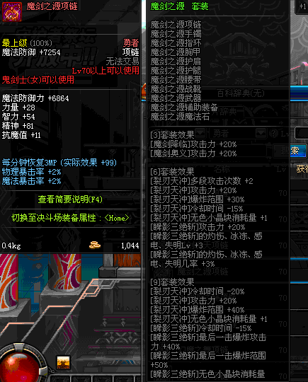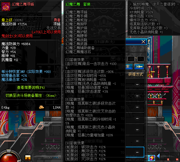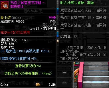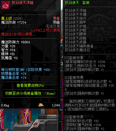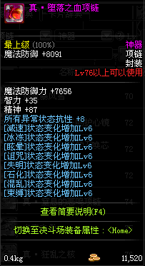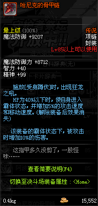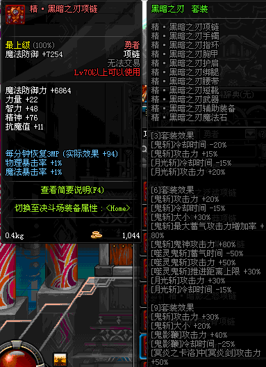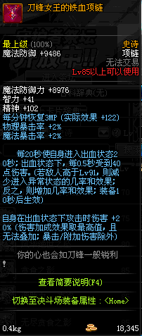85 刀锋女王的铁血项链 *Lv84~91深渊地下城怪物掉落