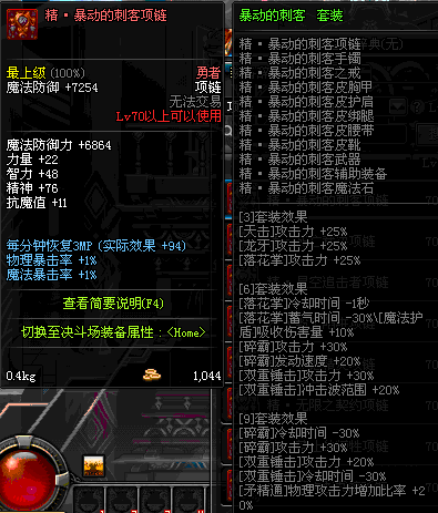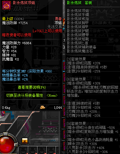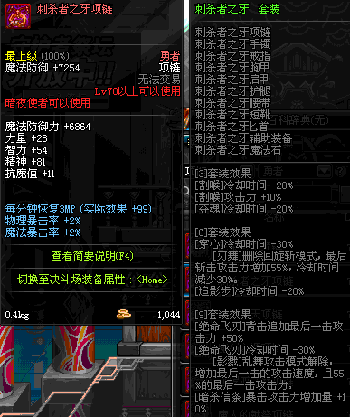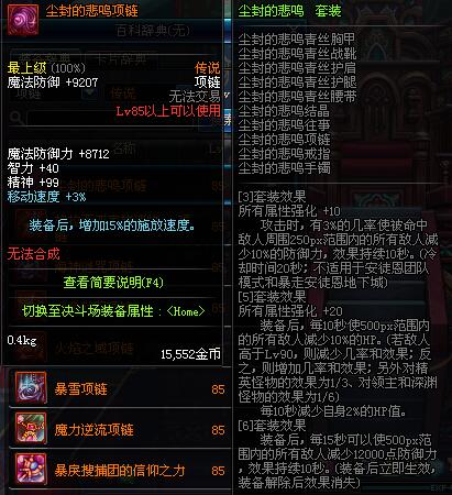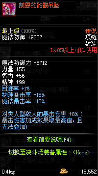 85 执行者的刺杀项链 *Lv84~91深渊地下城怪物掉落