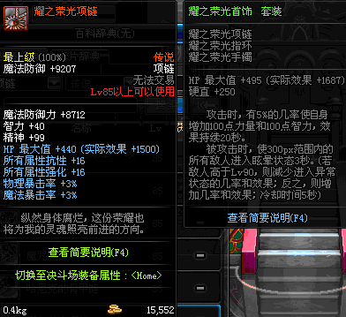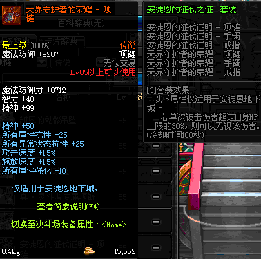 85 天界守护者的荣耀 - 项链 *在NPC乌恩的物品店购买(魔能矿 525)